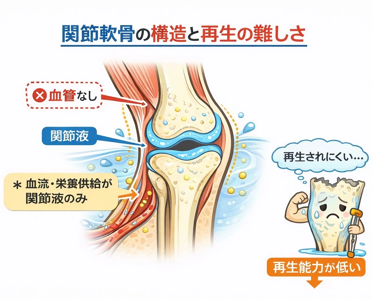 実は、関節軟骨は自然には再生しにくい組織であり、