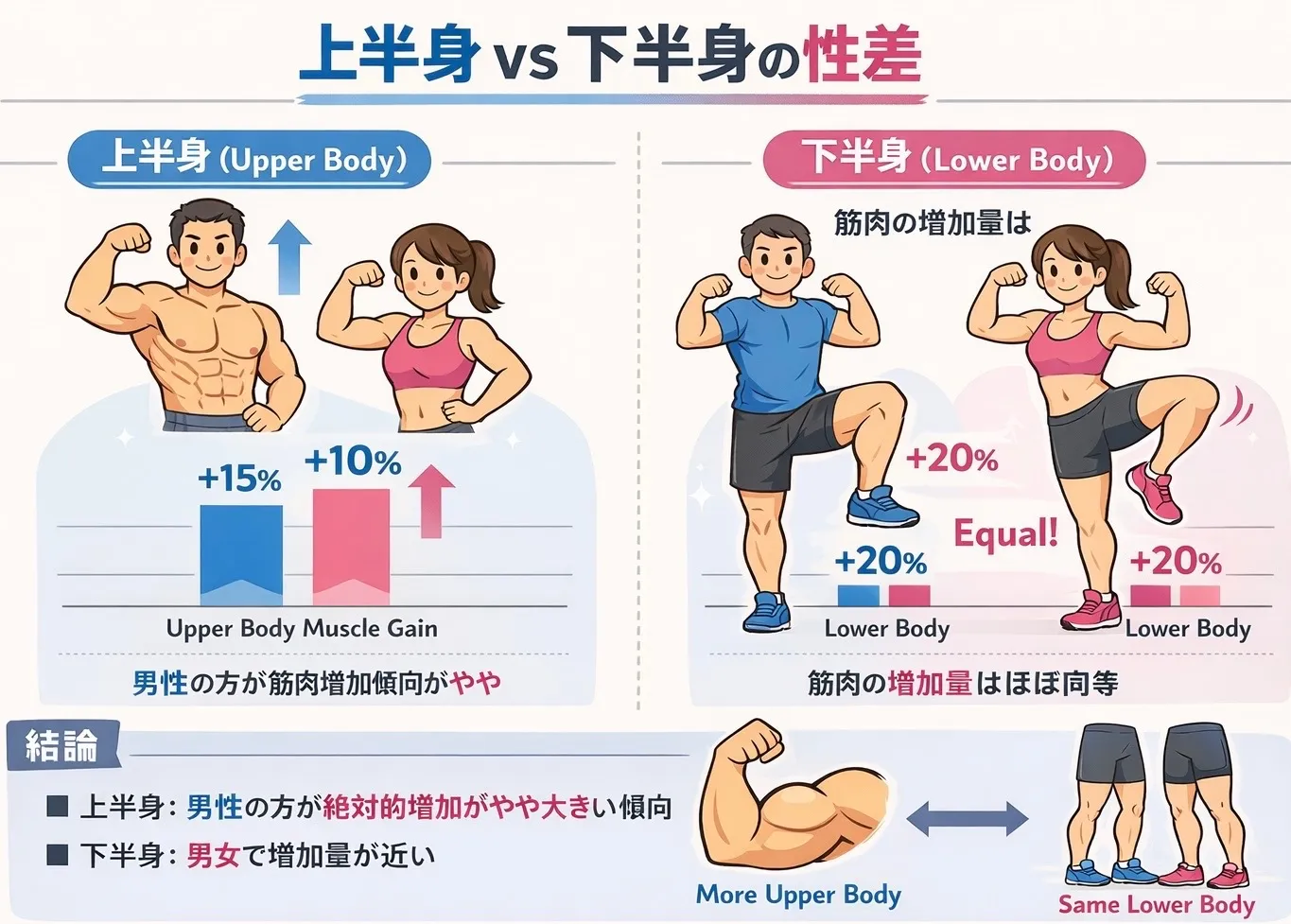 ✔ 性差が見えるのは“元の筋肉量の違い”やホルモン環境