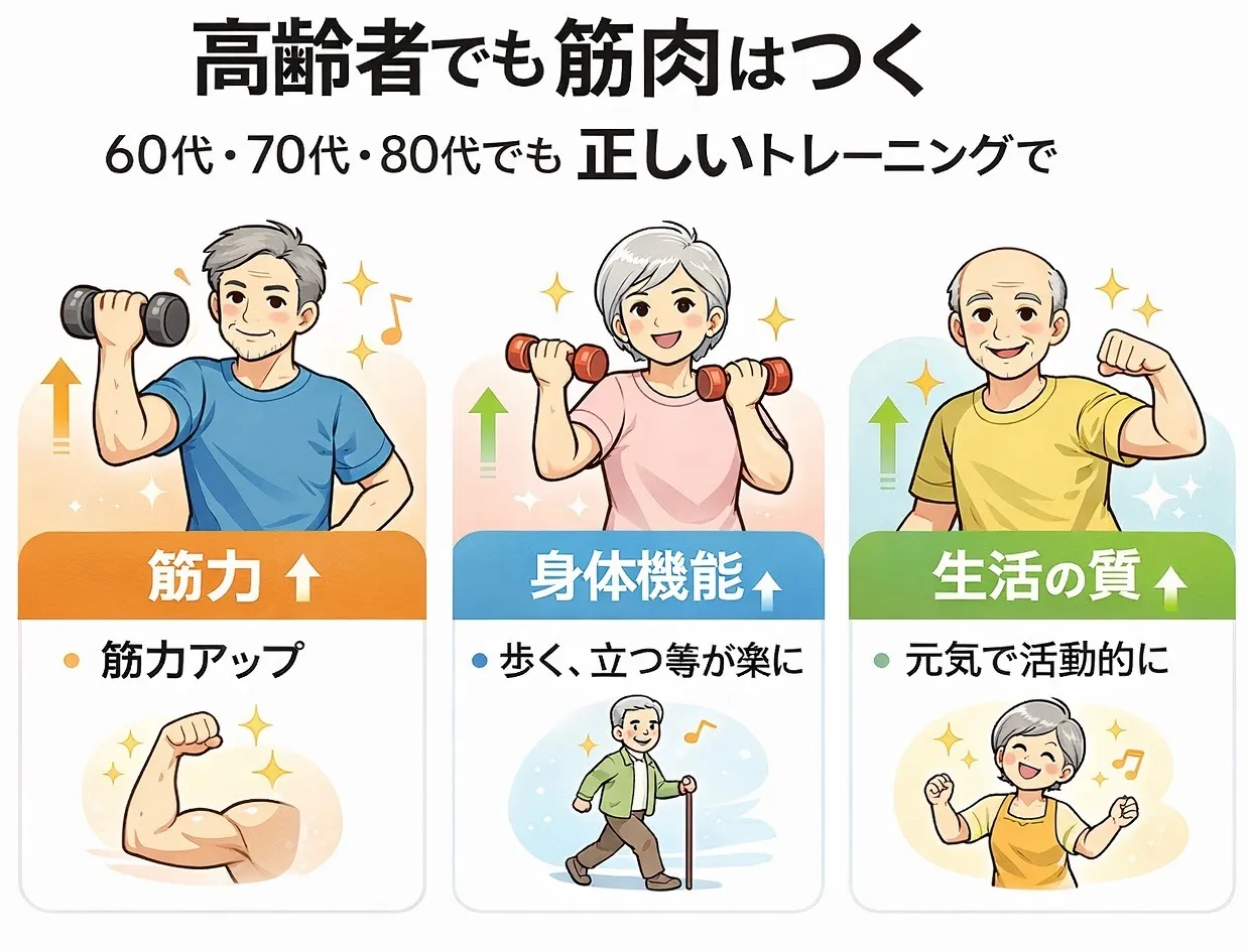 ✔ 高齢者でも筋力・機能の改善は明確に証明されている