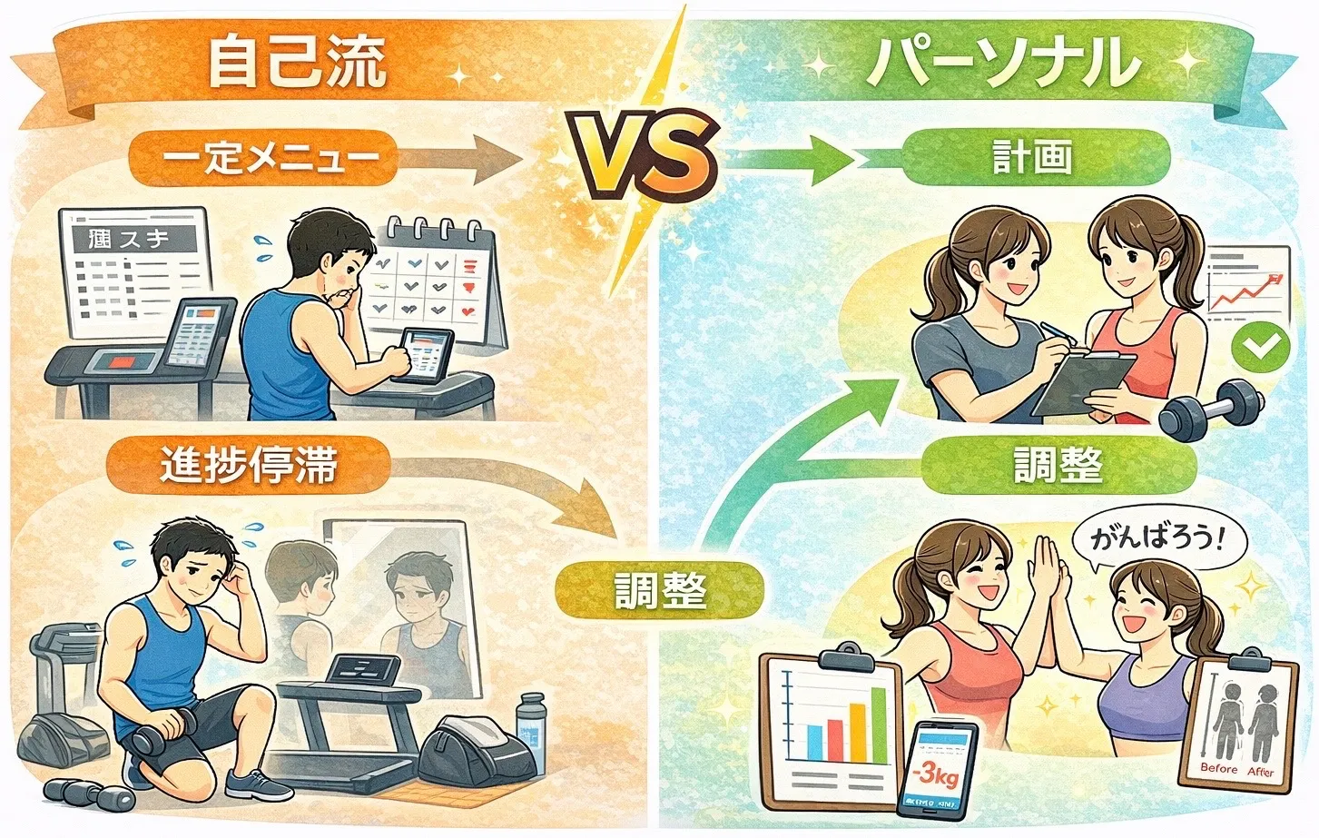 ここで強力な味方になるのが パーソナルトレーニング(マンツーマン指導) です。