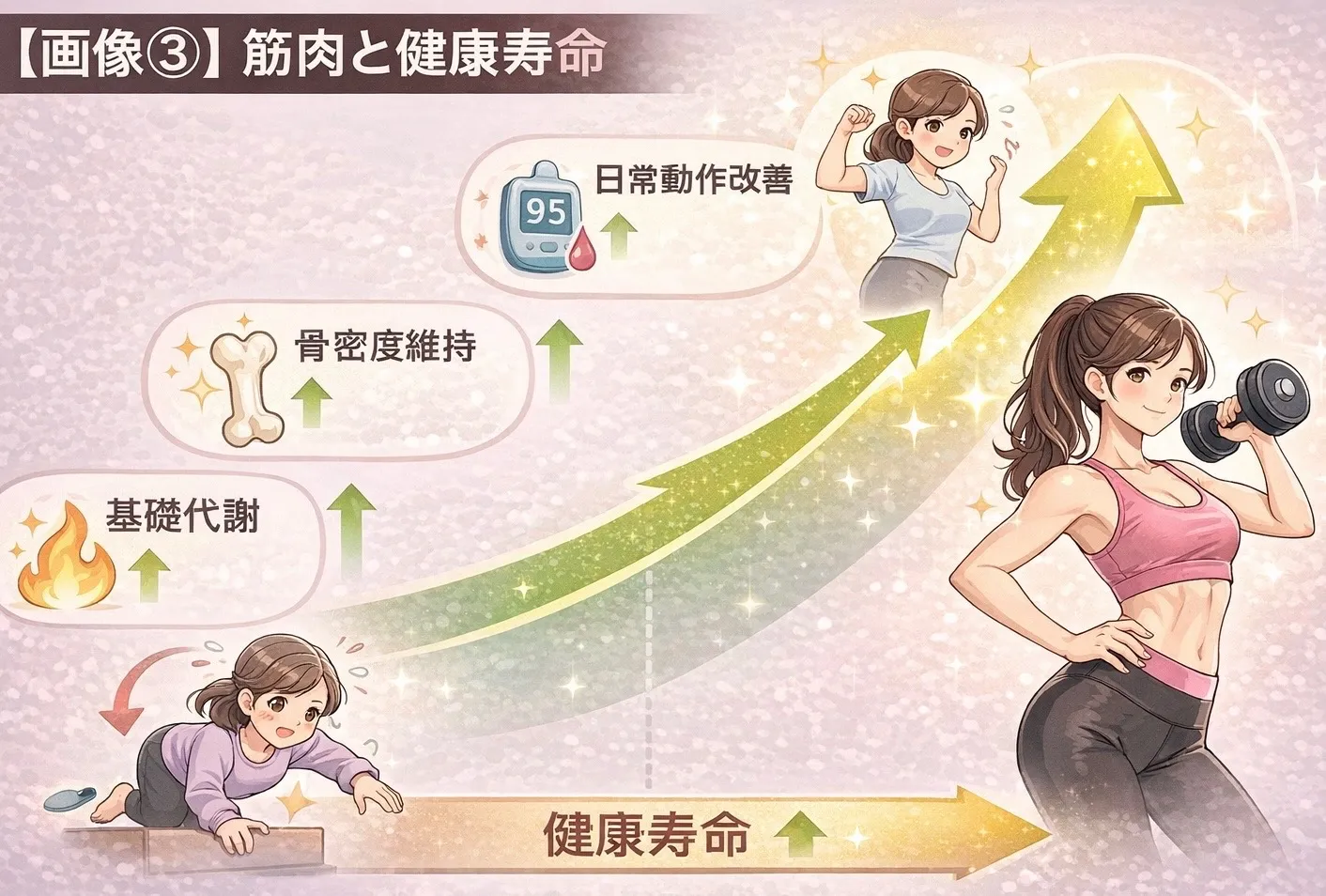 ✔ 筋肉は代謝・血糖・骨密度にも良い影響を与える