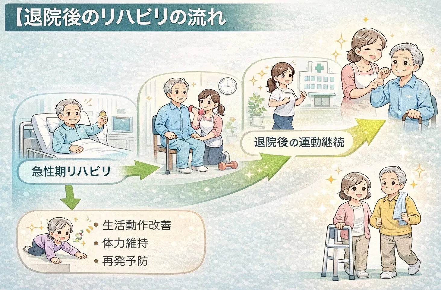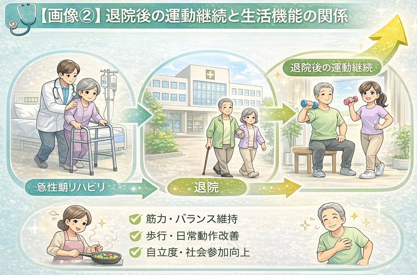 運動は退院後に終えるものではなく、長く続けることで初めてその効果が最大化します。