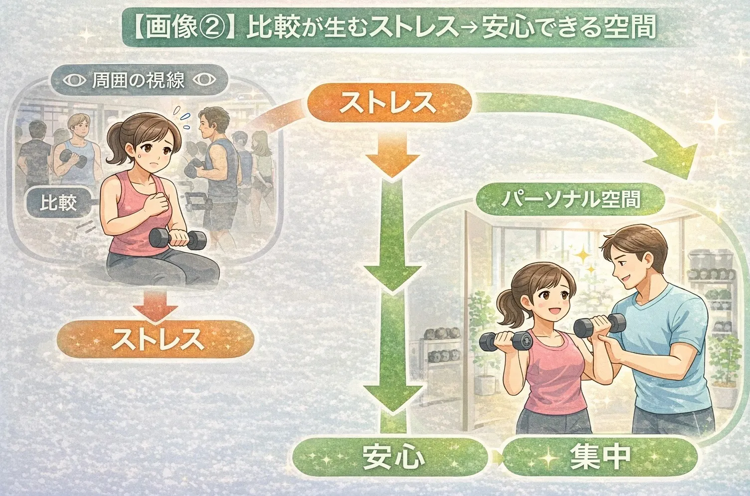 ② パーソナルトレーニングは“比較を減らして集中できる”