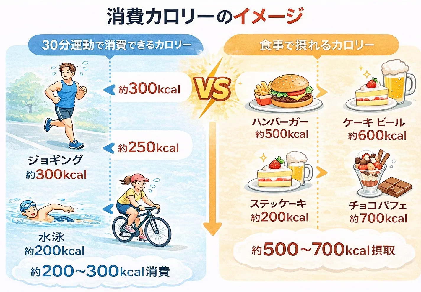 例えば、ウォーキングやジョギングなど中強度の有酸素運動でも、消費できるカロリー量は限られており、