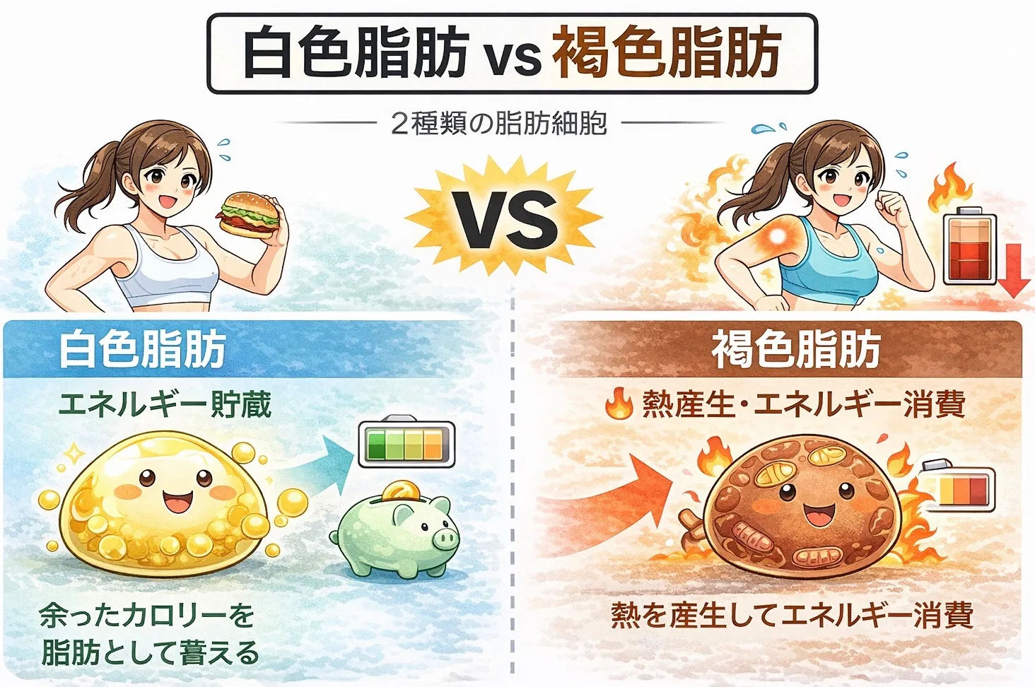 ✔ 褐色脂肪は熱産生に寄与し、エネルギー消費を助ける。