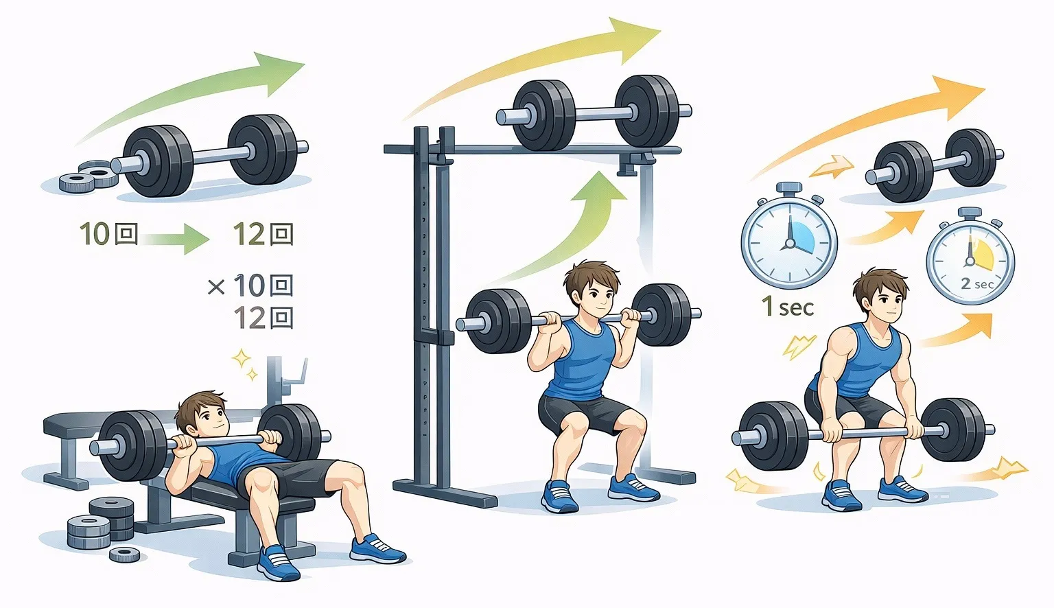 急激な重量増や無理な増量は怪我リスクを高めるため、安全性を確保しながら負荷を進めることが成功の鍵です。