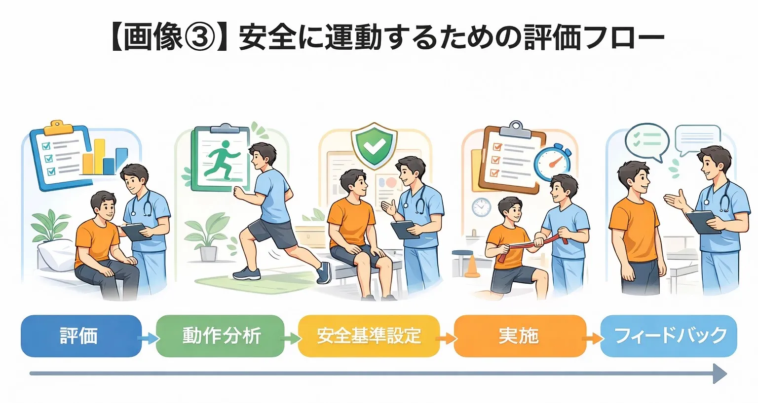といった点を見極めたうえで、安全でかつ効率的な運動処方を設計できます。