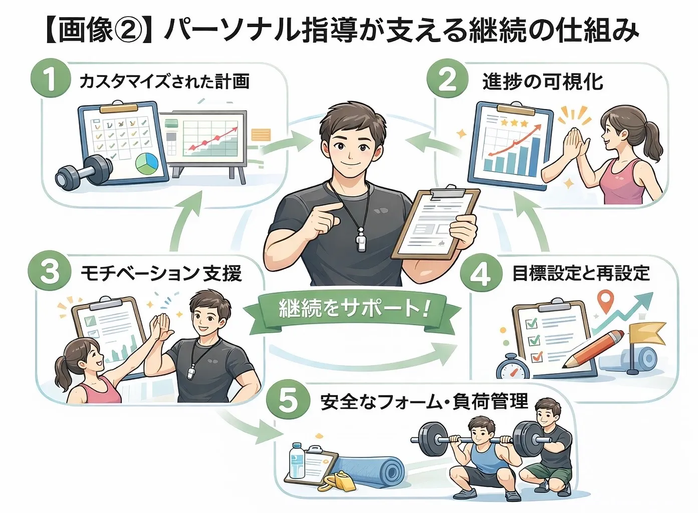 パーソナル指導は単なる筋トレのサポートではなく、「続けるための仕組み」に科学的根拠があるとされます。