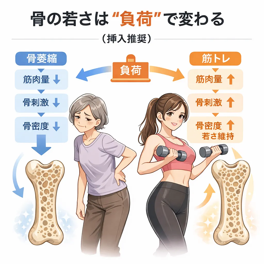✔ 老化による骨萎縮は筋トレで緩和・予防が可能。