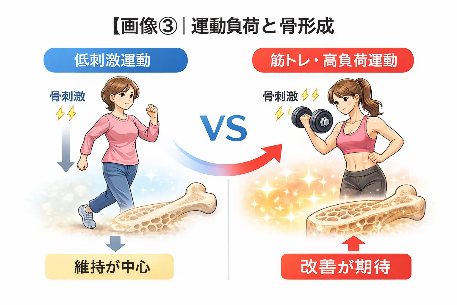 これはリハビリでも骨密度改善プログラムとして用いられている戦略で、安全性と効果のバランスが考慮されます。