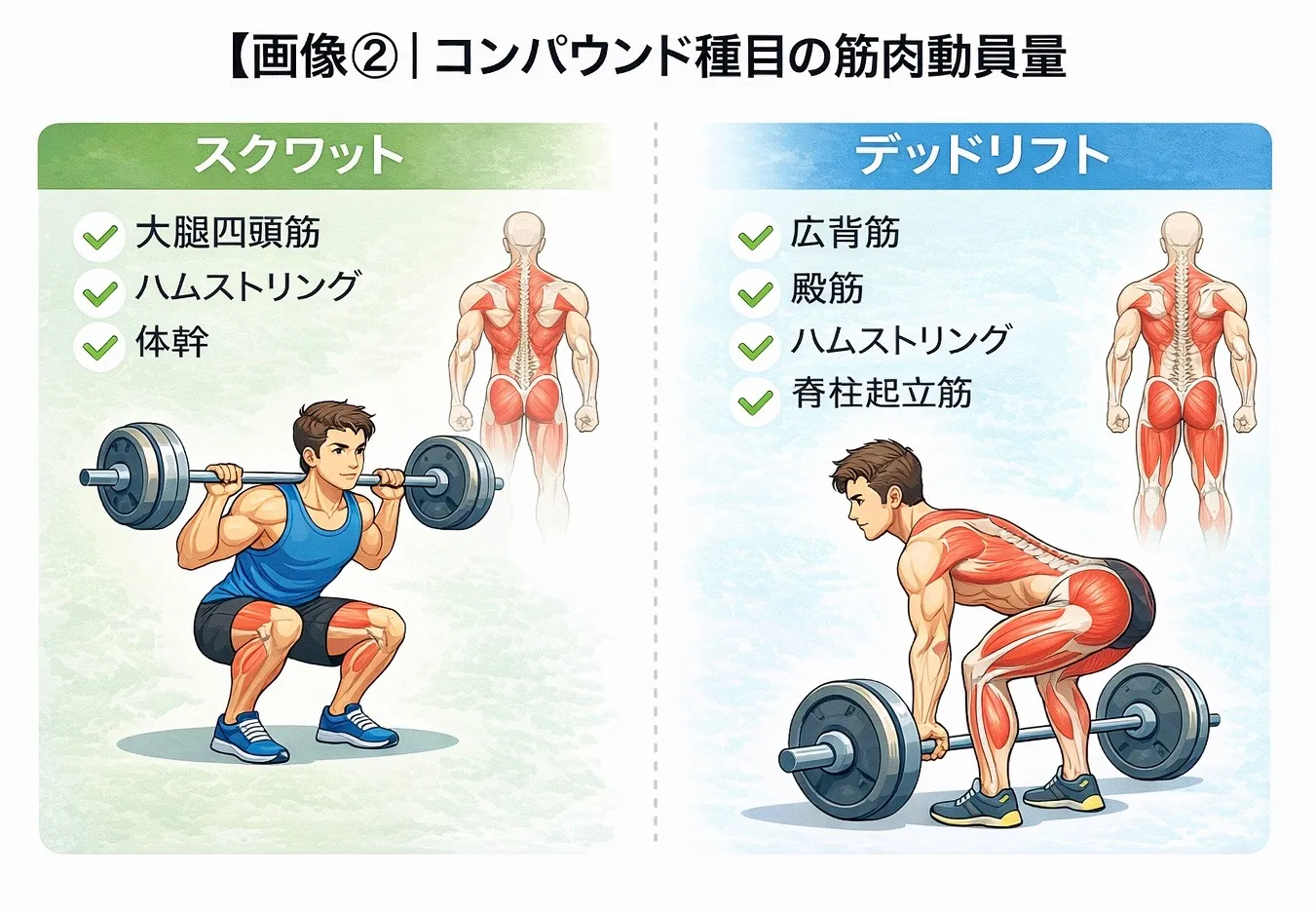 ✔ コンパウンド種目は全身的な筋力向上に効果的