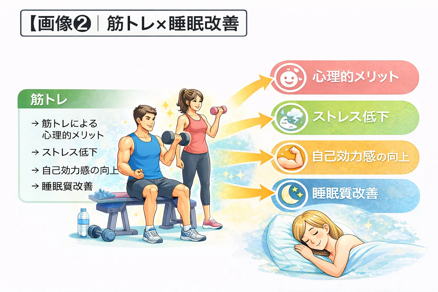 ✔ 筋トレが睡眠に与える生理的な影響