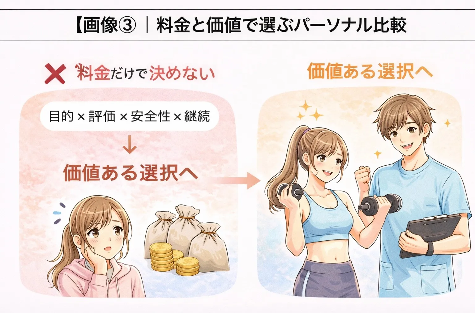 料金の差は、サービス内容や施設のグレード、トレーナーの経験などによって変わります。