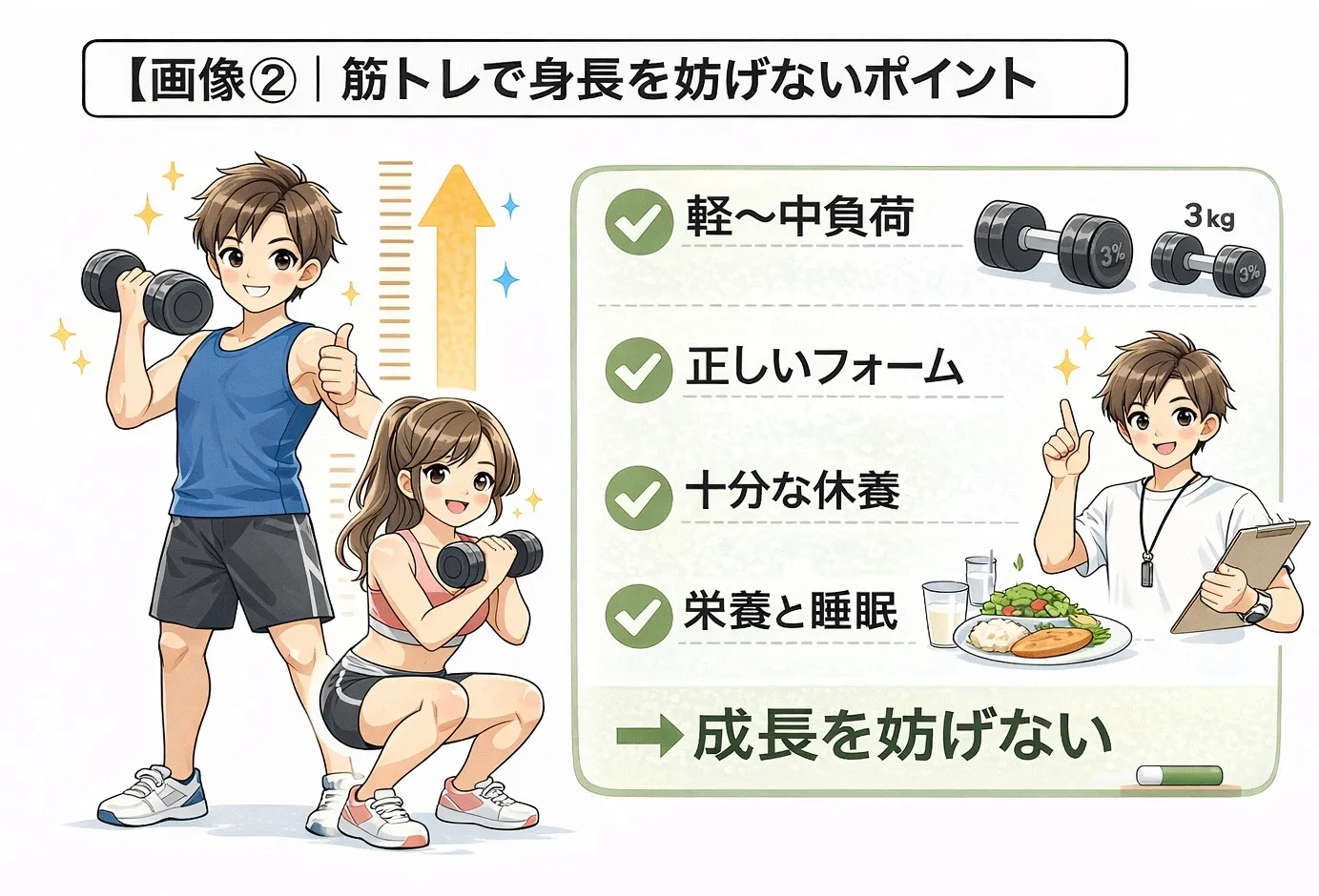 ✔ 科学的には「筋トレが身長を止める」という証拠はない