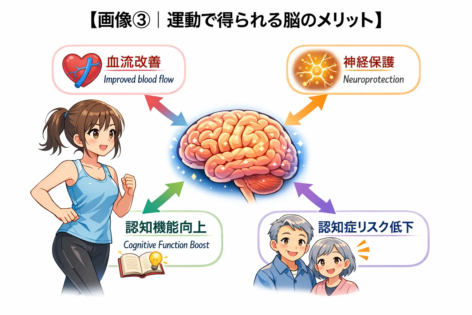 これは特に高齢者の研究で明確に示され、運動が脳と体を同時に守る戦略として有効であることが示唆されています。
