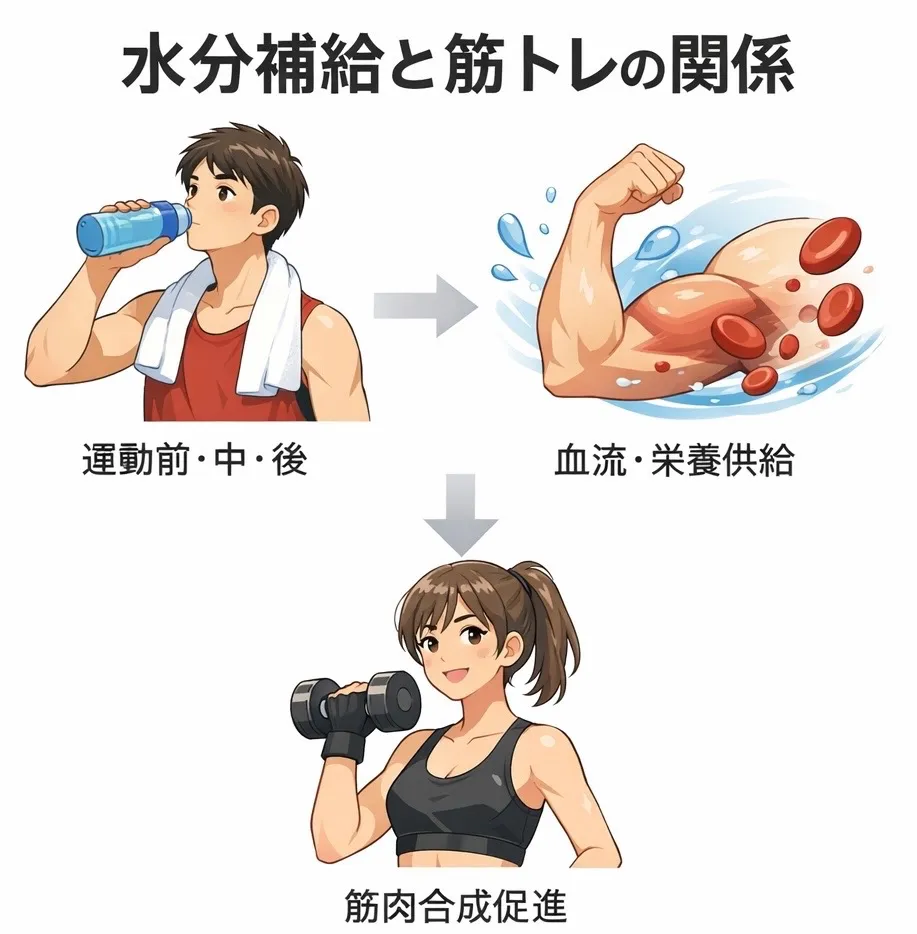 📌 ③ 水分が栄養補給・筋合成に関与する仕組み