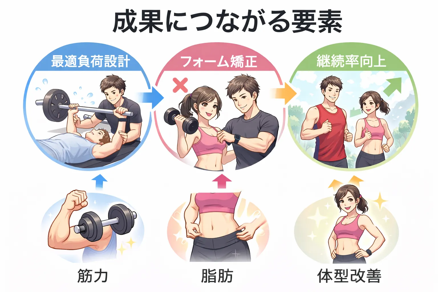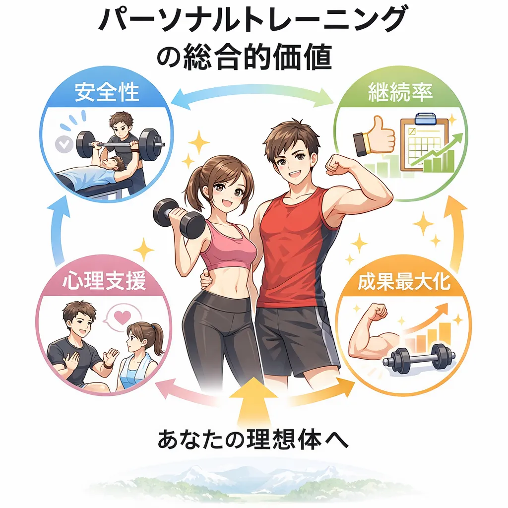 科学的・個別化された設計で賢く・安全に続けることが体を変える重要なポイントであり、それがパーソナルトレーニングの本質的な強みです。