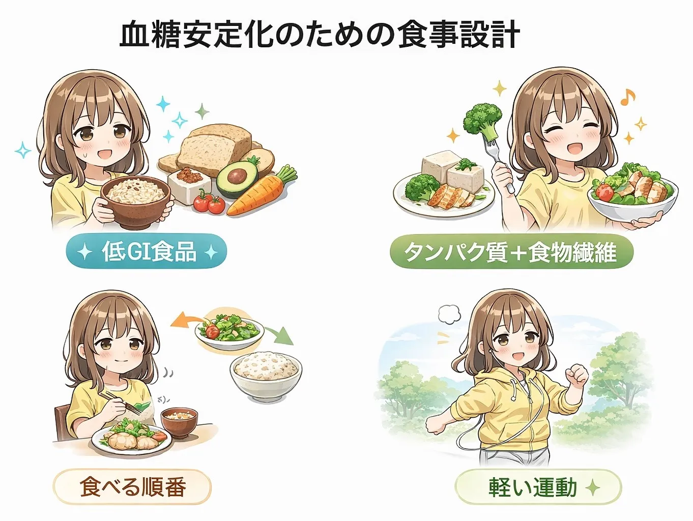 📌 血糖変動を抑えるための具体的戦略