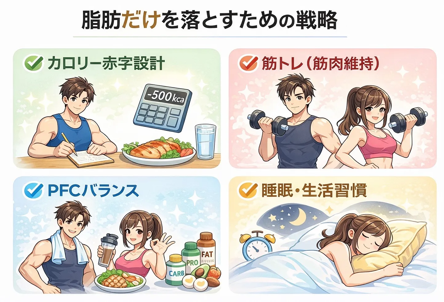 ✔ 長期的・健康的に脂肪を落とすメソッド