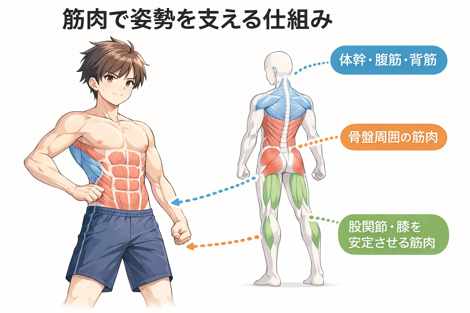 👉 それを筋肉がどう支えているか