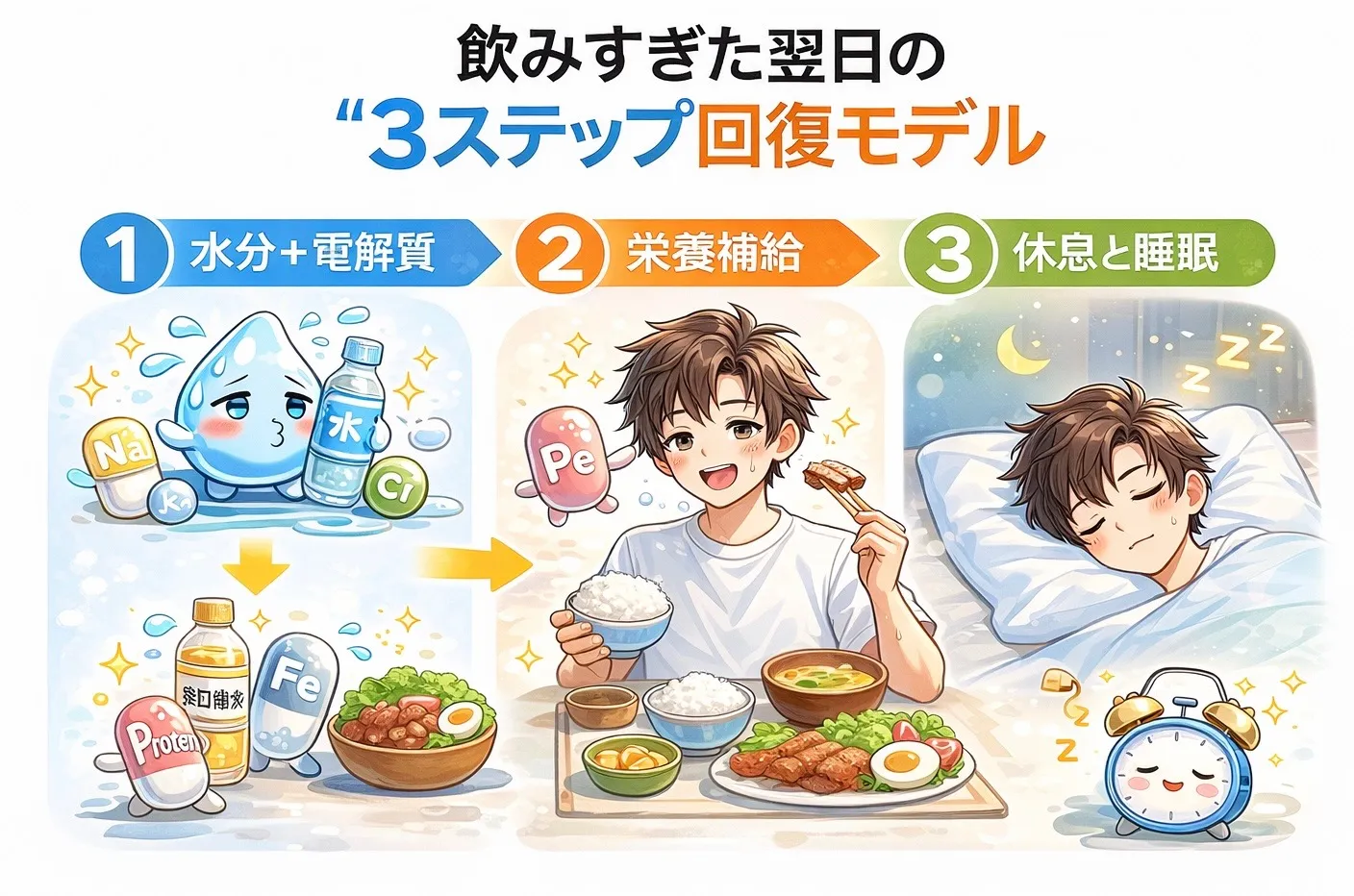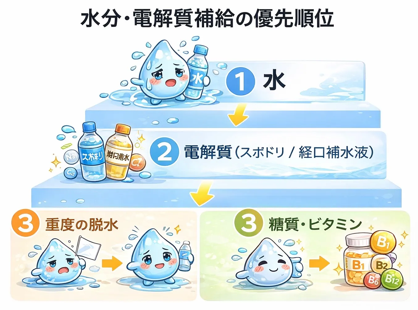 💧 ② まずは“水と電解質”を補給!