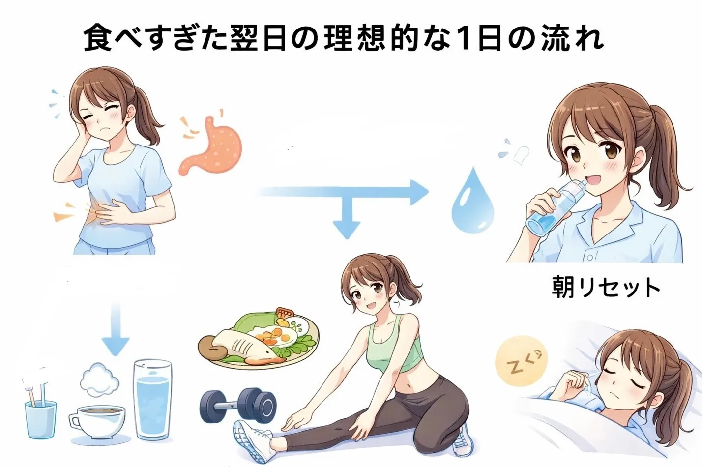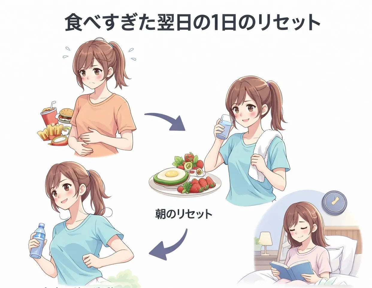 今日は「食べすぎた翌日の対処法」をテーマに、エビデンスに基づいた科学的なリセット法を解説します!