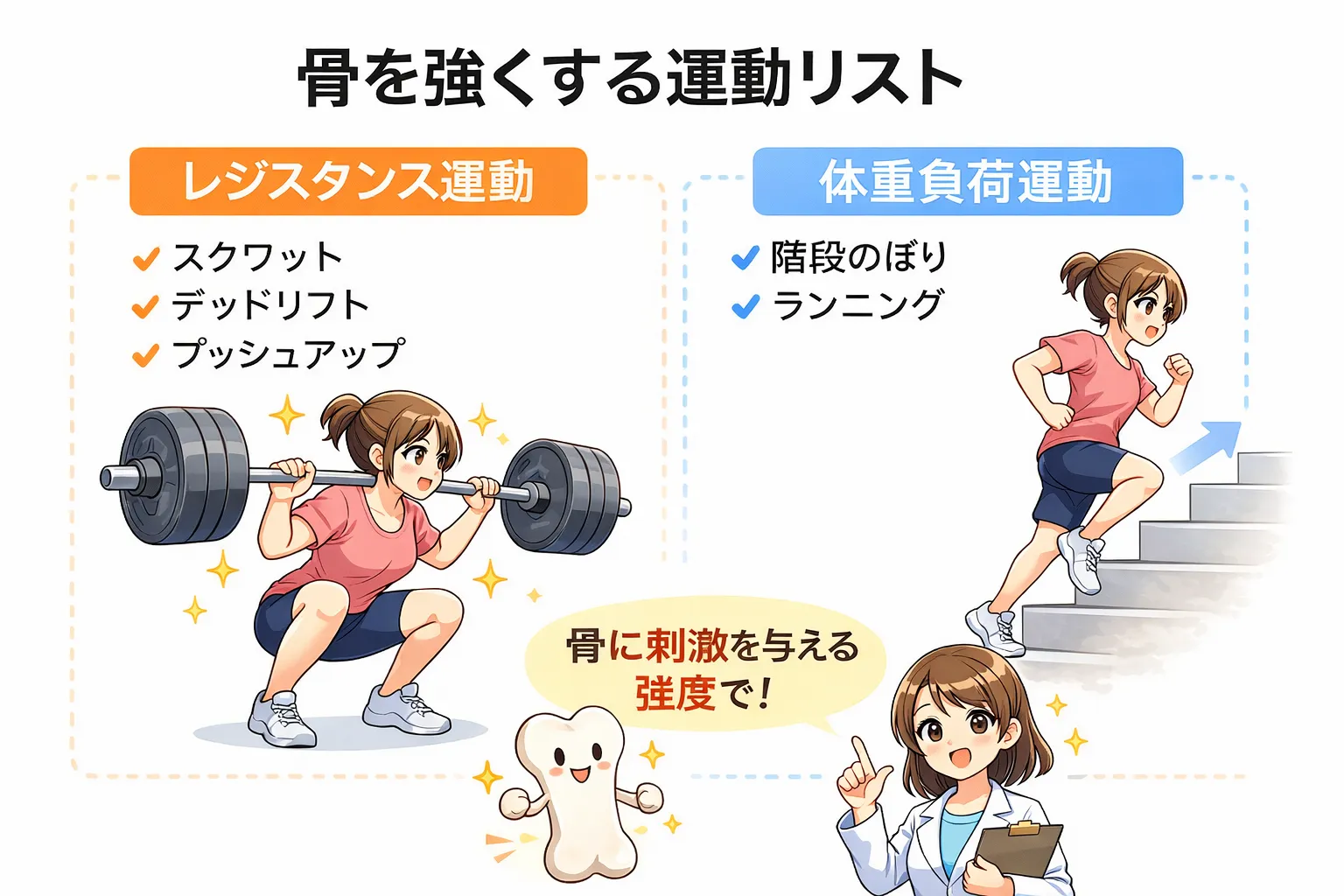 ✔ 筋トレ・全身運動は骨のリモデリングを促進