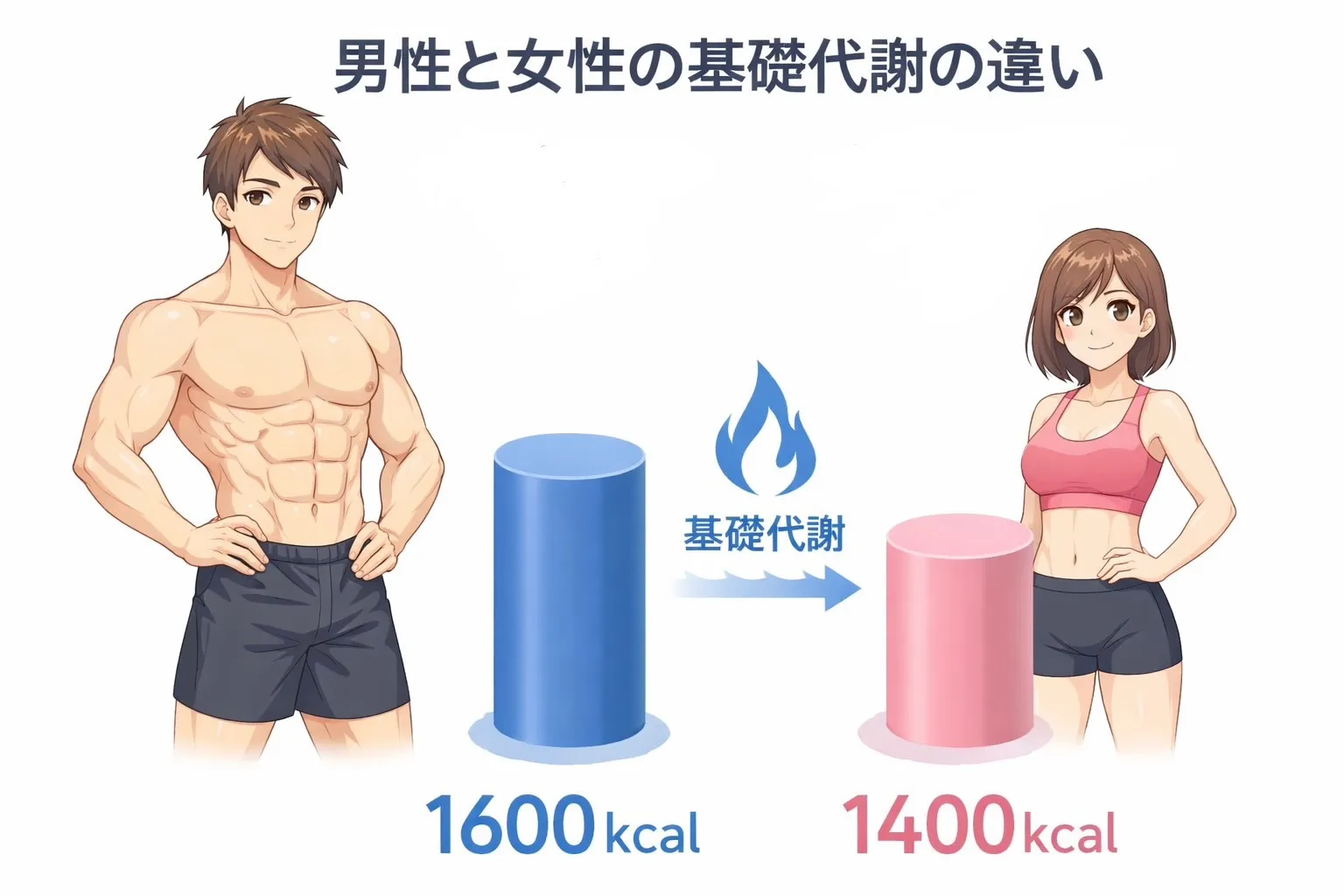 ⭐ 男性は筋肉量が多く、基礎代謝が高い