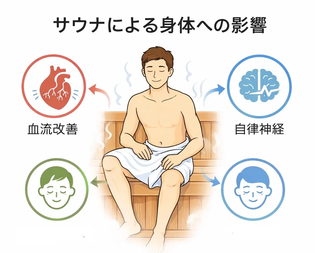 ・サウナには血流改善やリラックス効果など、健康に良い影響が多くあります。