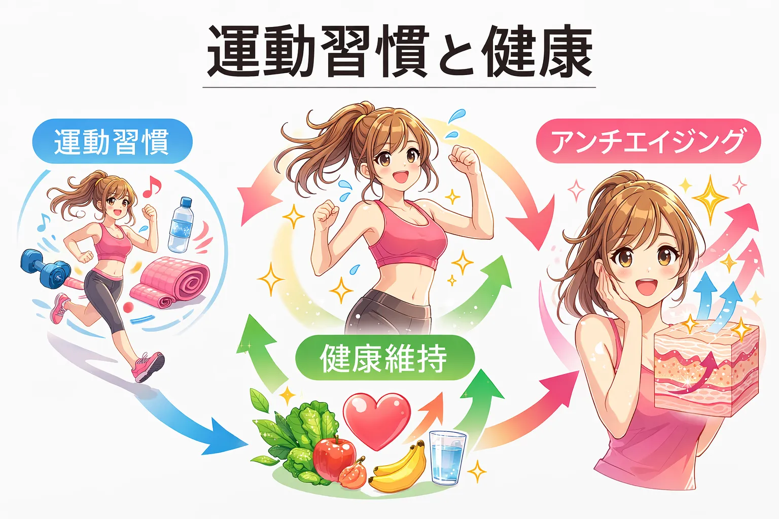 さらに運動習慣がある人は睡眠の質が良い傾向があるとも言われています。睡眠は皮膚の再生にも重要な役割を持っています。