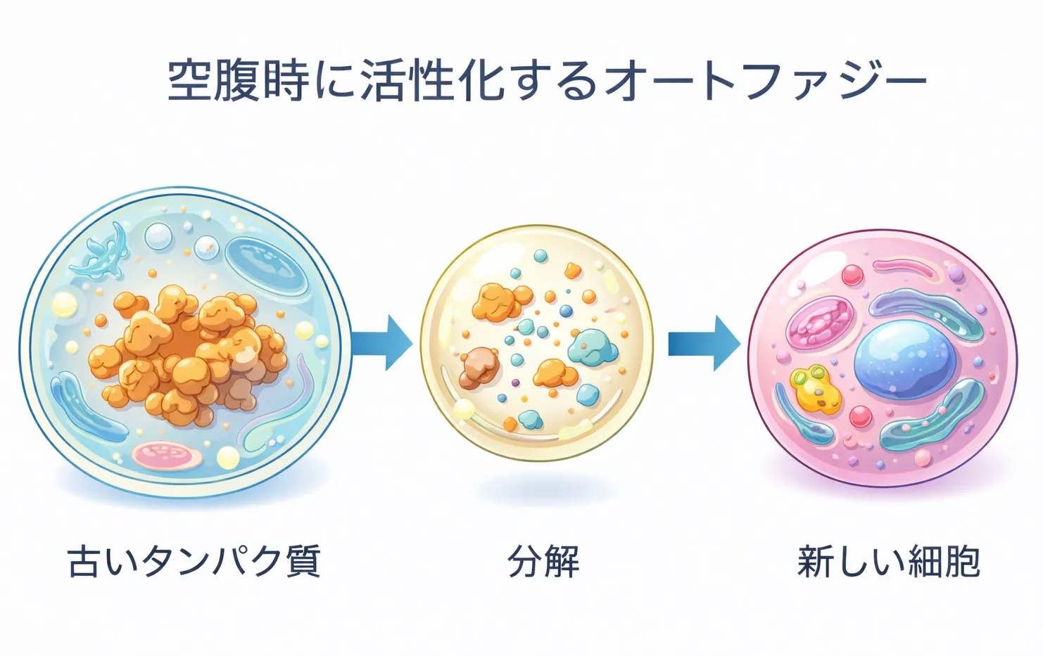 近年の研究では、空腹状態が身体の細胞修復機能を高めることも分かってきています。