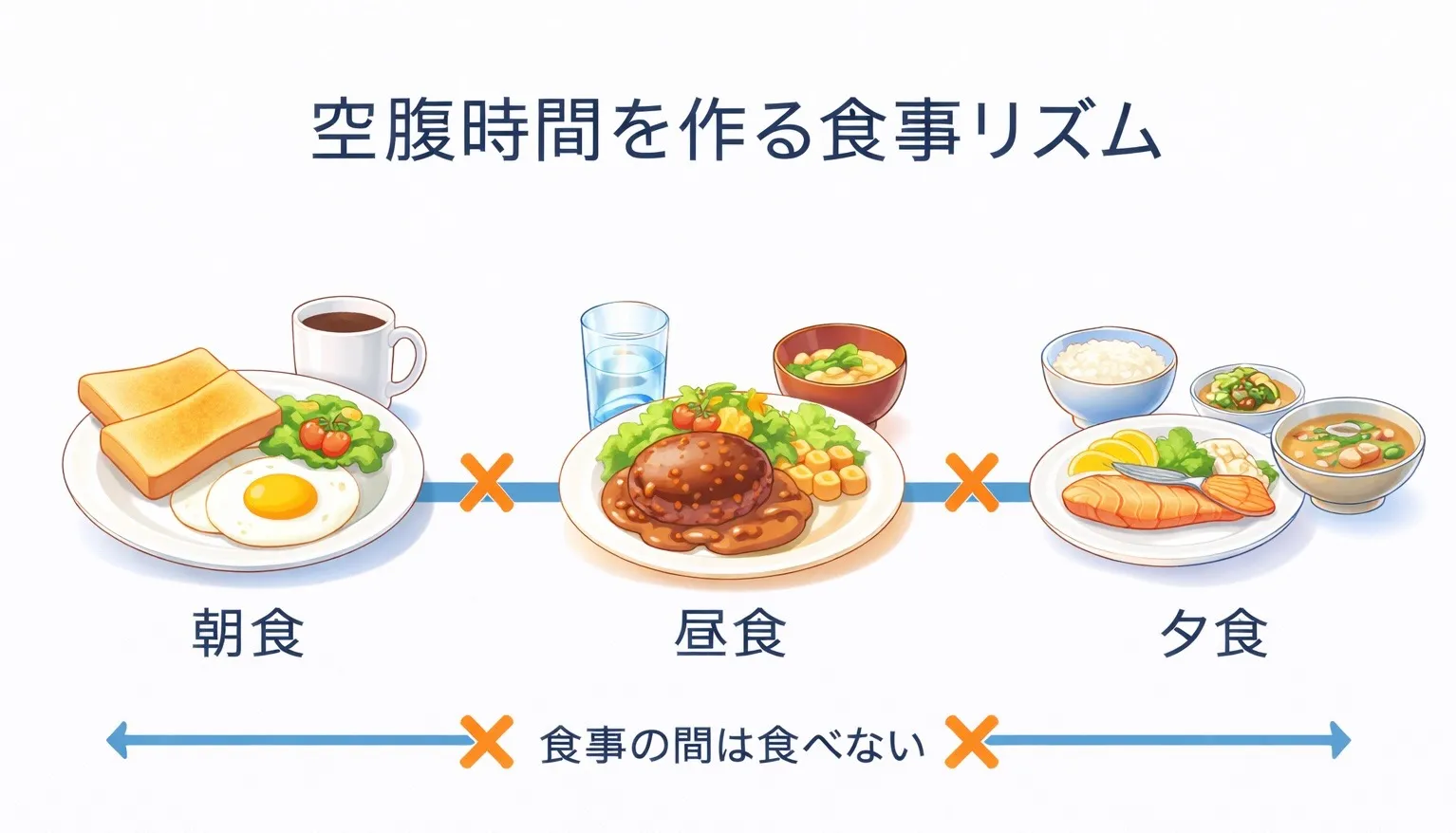 大切なのは間食を減らし、食事の間隔を空けることです。
