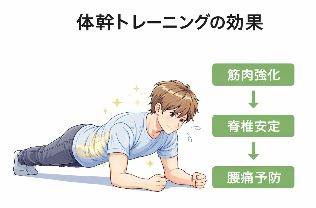 研究でも、体幹筋トレーニングは慢性腰痛の改善に有効である可能性が示されています。