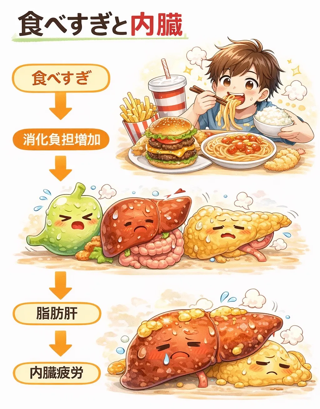 つまり食べすぎは、内臓の疲労を蓄積させる行為でもあるのです。