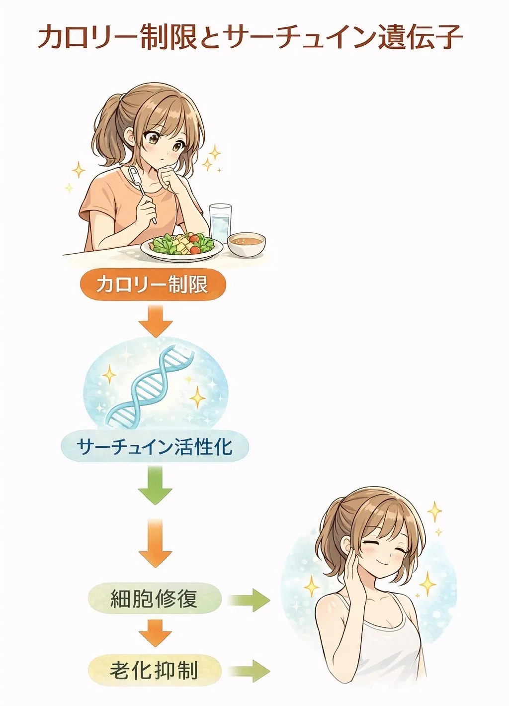 つまりカロリー制限は、単に体重を減らすだけでなく、細胞レベルでの若返りに関係するのです。