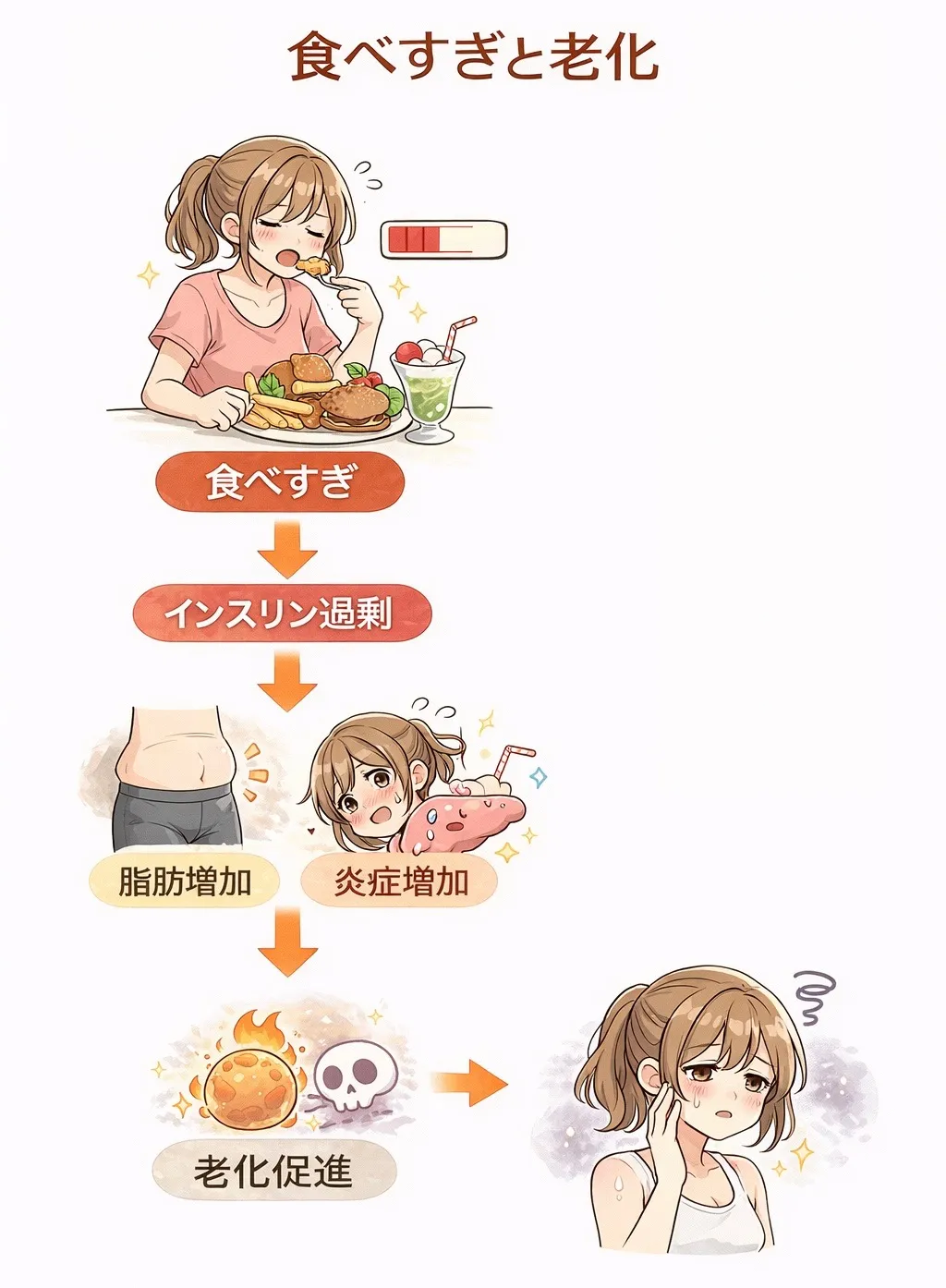 さらにインスリンの過剰な分泌状態は、老化を促進する影響を与えると考えられています。