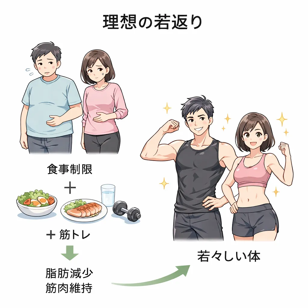 筋肉を維持しながら脂肪を減らすことで、健康的な若返りにつながります。