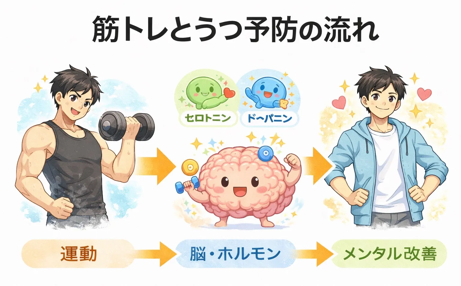 筋トレを行うと、脳内ではさまざまな変化が起こります。