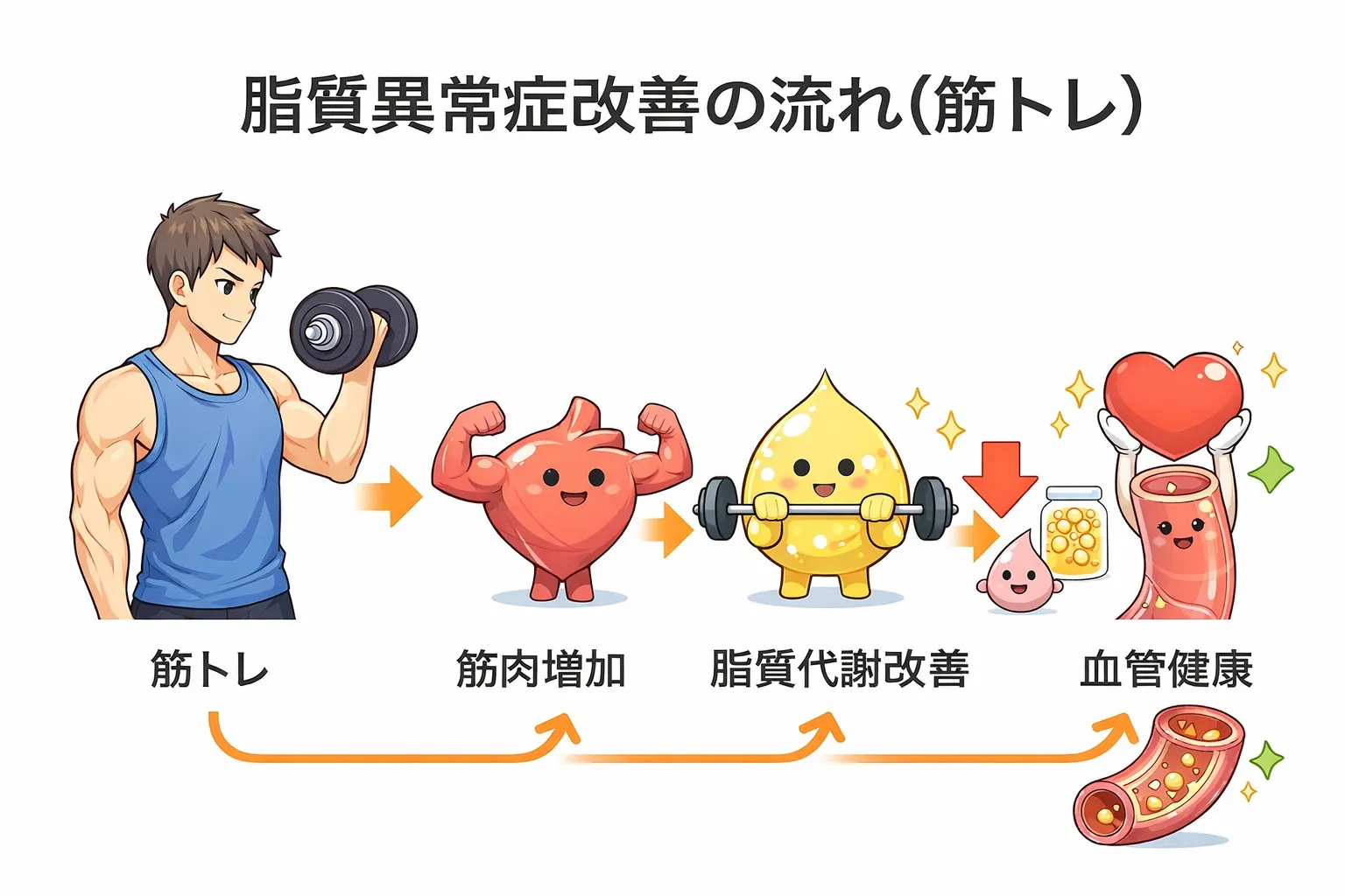 つまり筋トレは「脂質異常症の根本原因」にアプローチできる手段です。