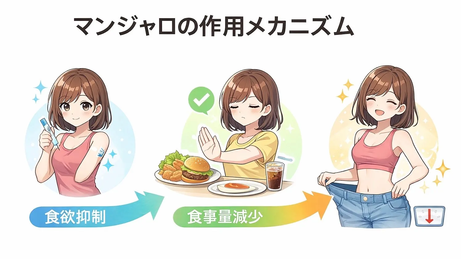 マンジャロの最大の魅力は、「努力しなくても痩せる」という点です。