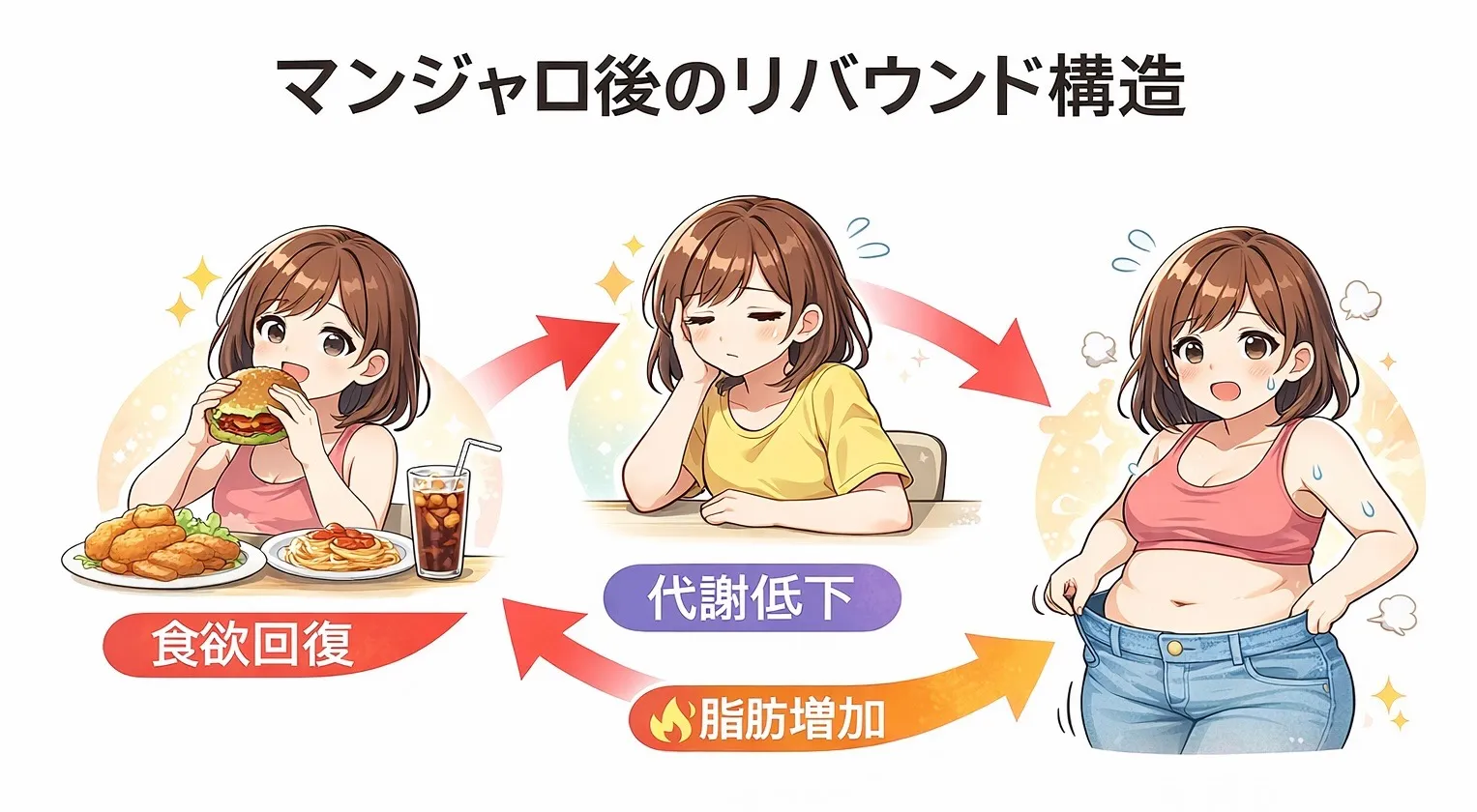 この状態で食事量が戻ると「以前より太りやすい体」になります。