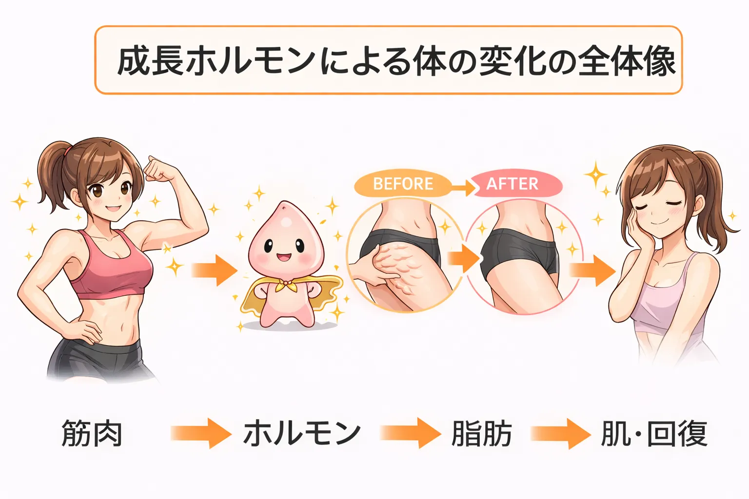 ・成長ホルモンは筋肉・脂肪・肌・回復に関与する