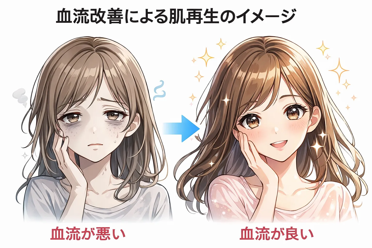 皮膚は血管が豊富な組織であり、血流が悪いとターンオーバー(細胞の入れ替わり)が滞ります。