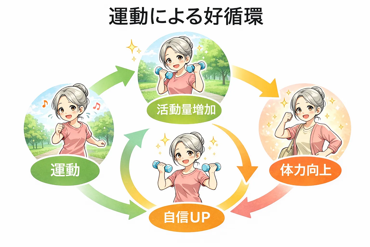 これが活動量の増加につながり、さらに体力が向上するという“良い循環”が生まれます。