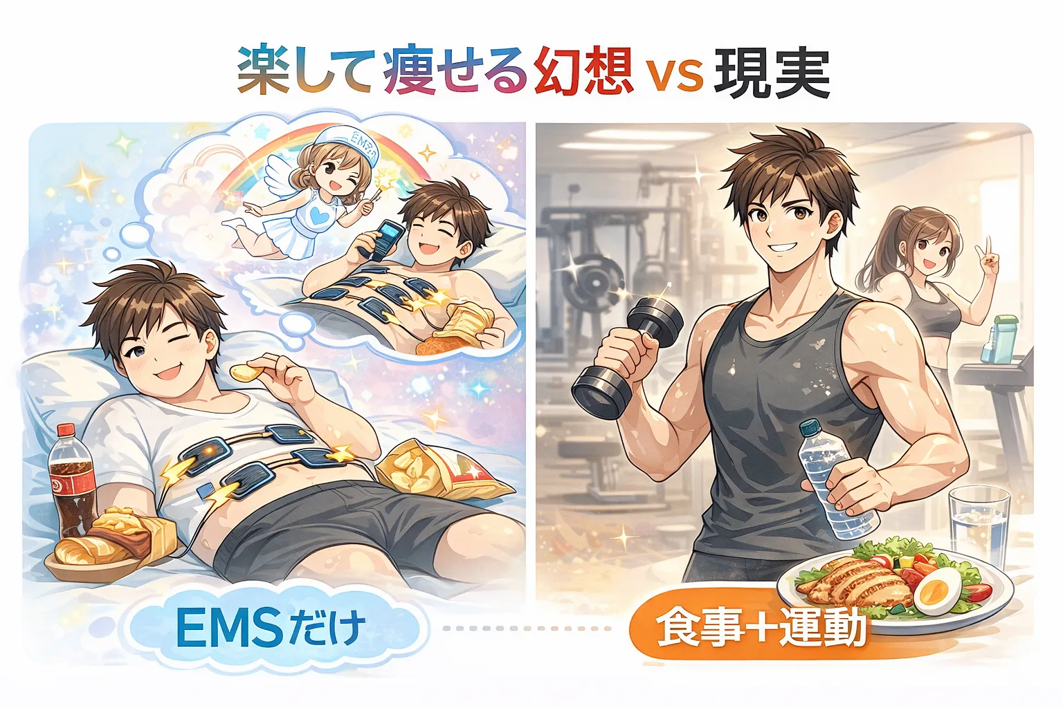 しかし、「EMSだけで痩せる」という使い方は、本質から大きくズレています。