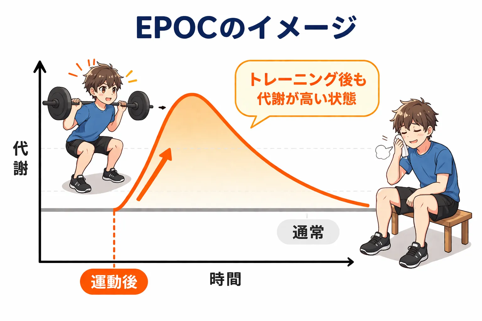 これをEPOC(運動後過剰酸素消費)と呼びます。