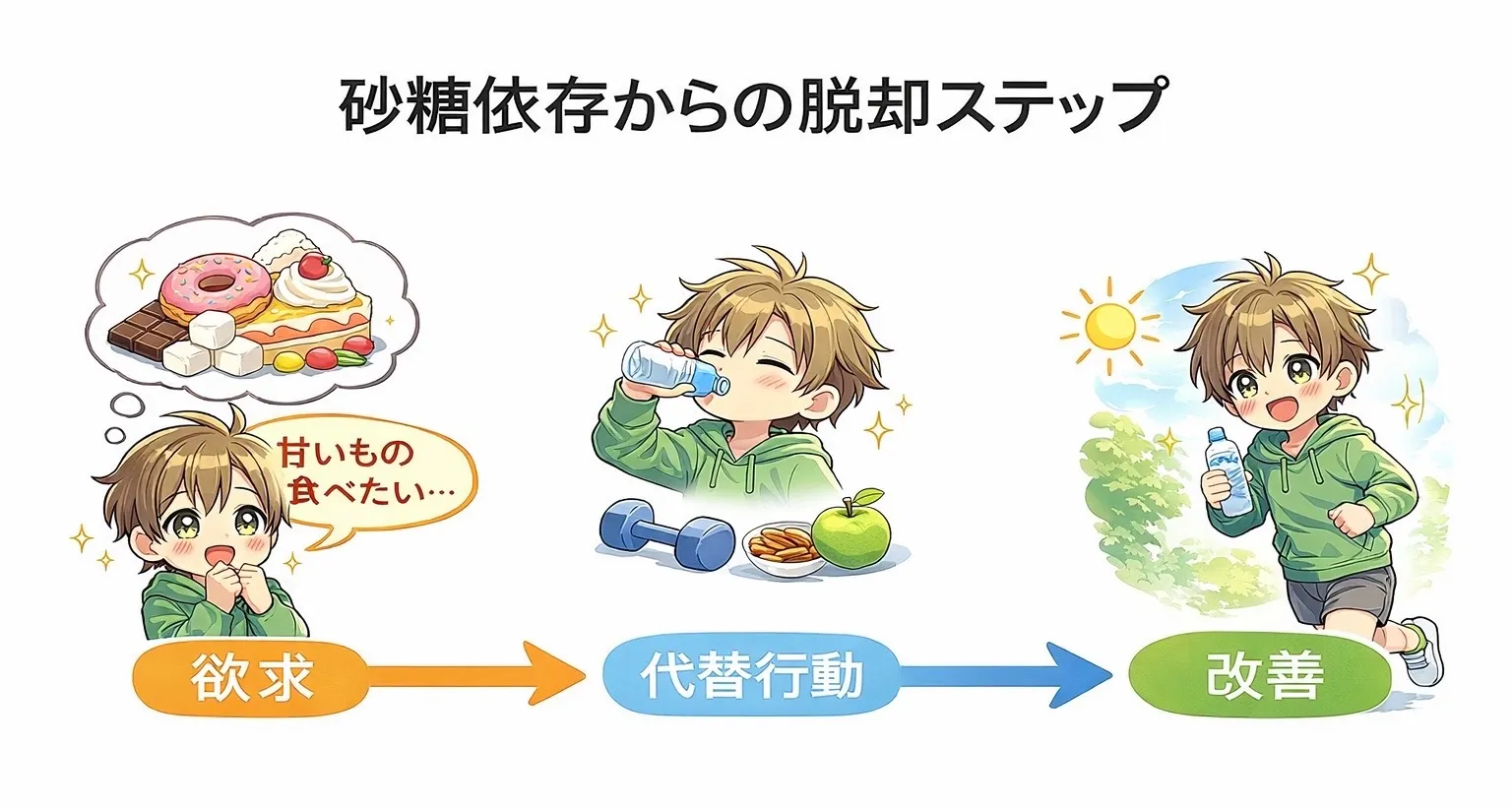 砂糖依存から抜け出すには、“環境と習慣を整えること”が最も重要です。
