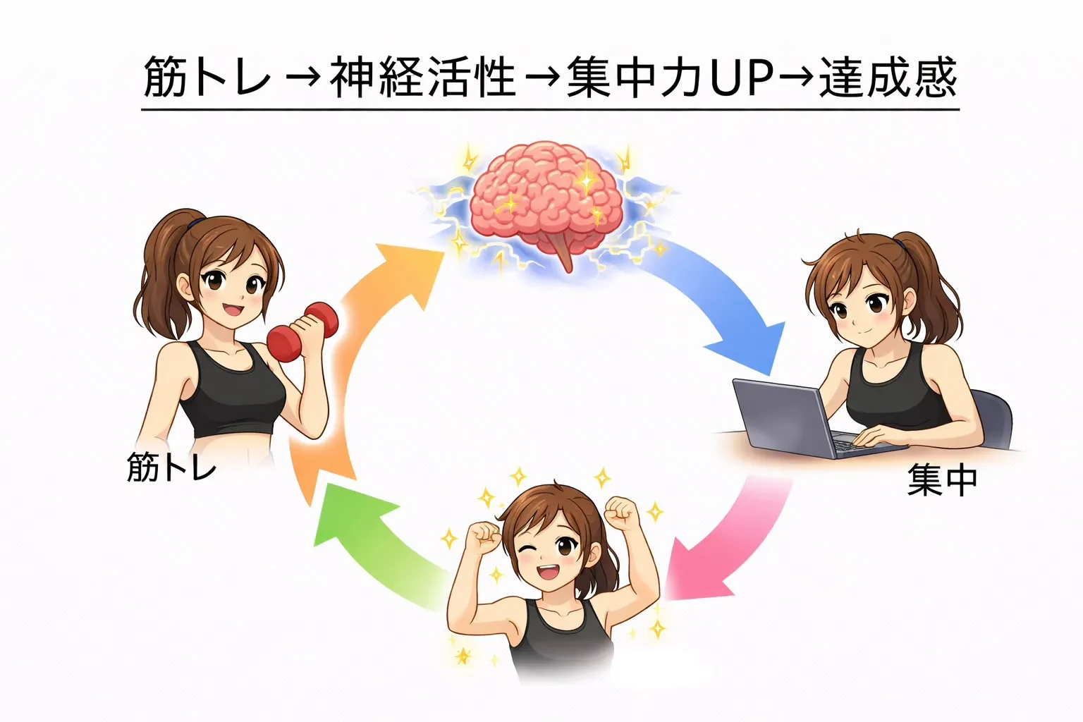 筋トレ後の達成感は複数の要素が重なって生まれています。