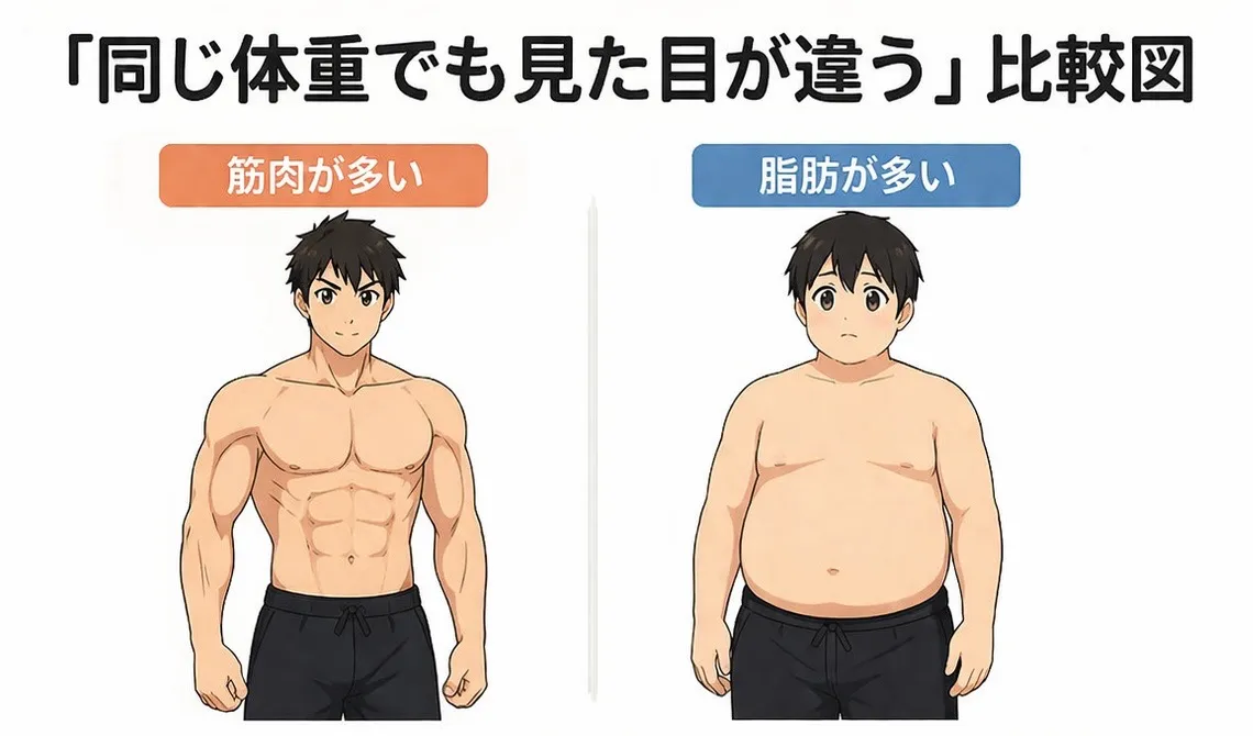 つまり体重というのはあくまで“総量”であって、見た目を決めるのは“中身の構成”です。