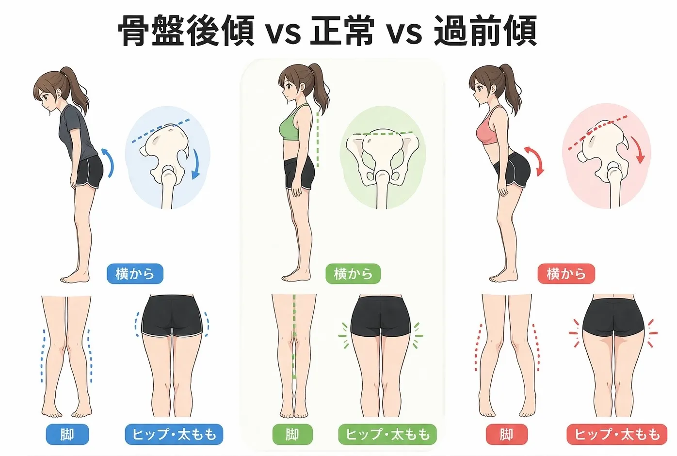 ・骨盤後傾 → お尻が垂れて脚が短く見える